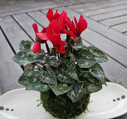 ガーデンシクラメンで苔玉を作りました。