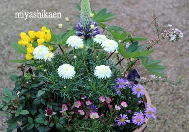 今回の寄せ植えは、すべて耐寒性のある多年草の花苗です。